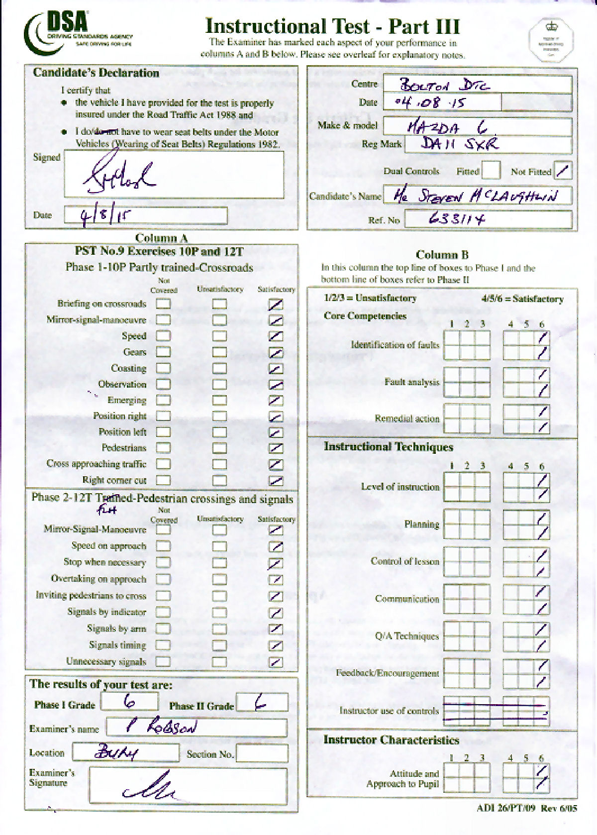 Below is a copy of the actual examiners marking paper from Steven's Part III Exam.